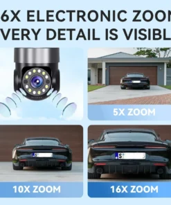 4K WiFi Security Cameras Four Len Three Screens 16X Zoom PTZ Auto Tracking 6K Waterproof Outdoor CCTV Video Surveillance Camera