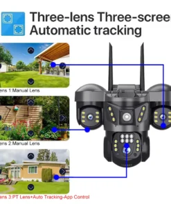 Dual lens, Dual screen, Notifications alarm, humanoid tracking, two way voice intercom 360 monitoring, full color night vision, IP66 waterproof, mobile phone remote monitoring,Share video, SD card storage, 24 hours video recording.