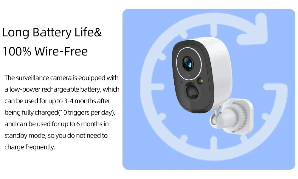 Separate design of solar panel and wifi camera. Installation is more simple and convenient. Support 5-50M power extension cord. Solar cameras can also be installed indoors.
